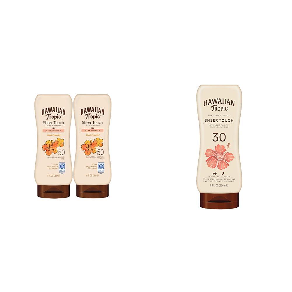 - Product 1: HAWAIIAN TROPIC SUNSCREEN LOTION SPF 50 with an Ultra Radiance formula that leaves skin luminous